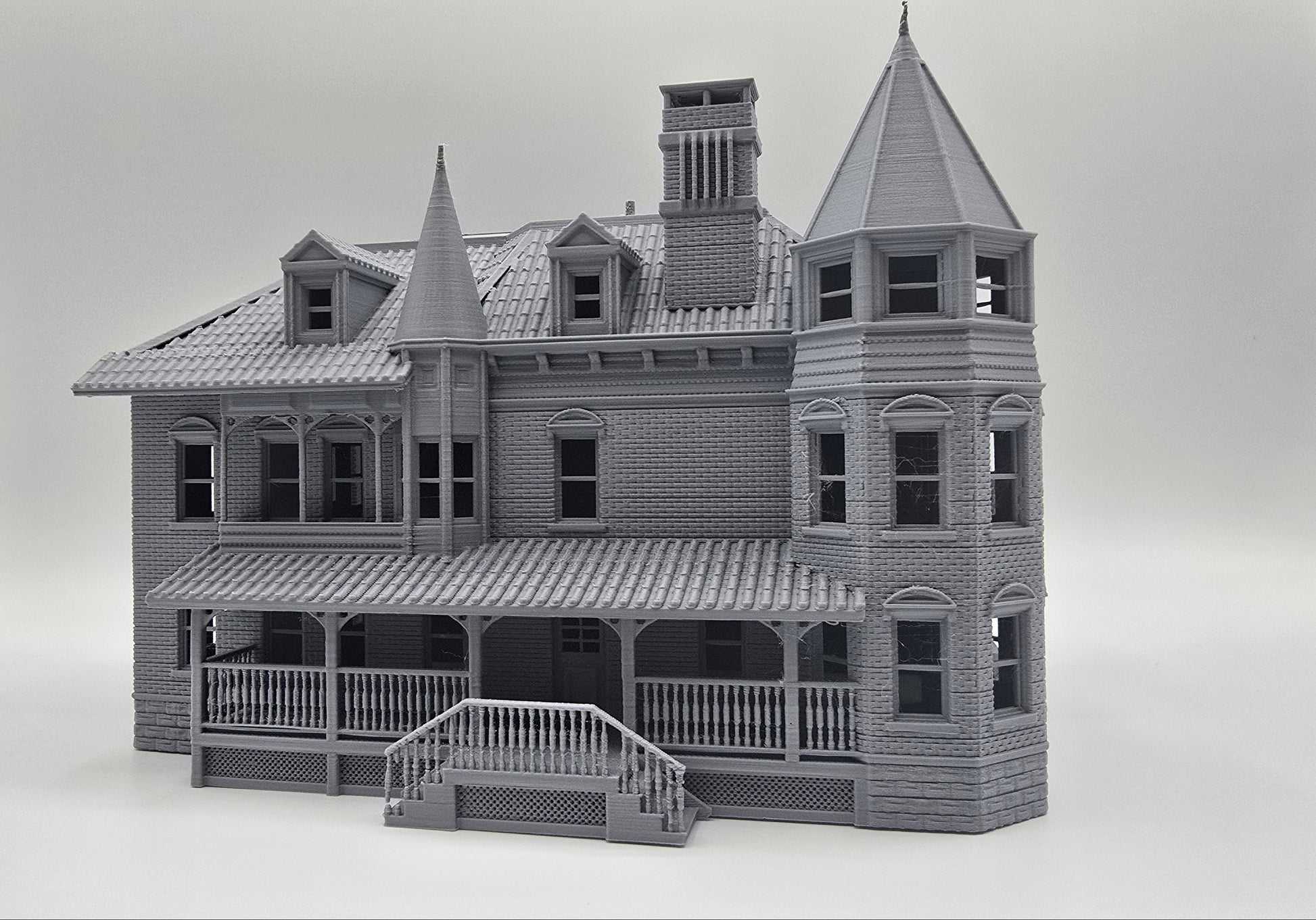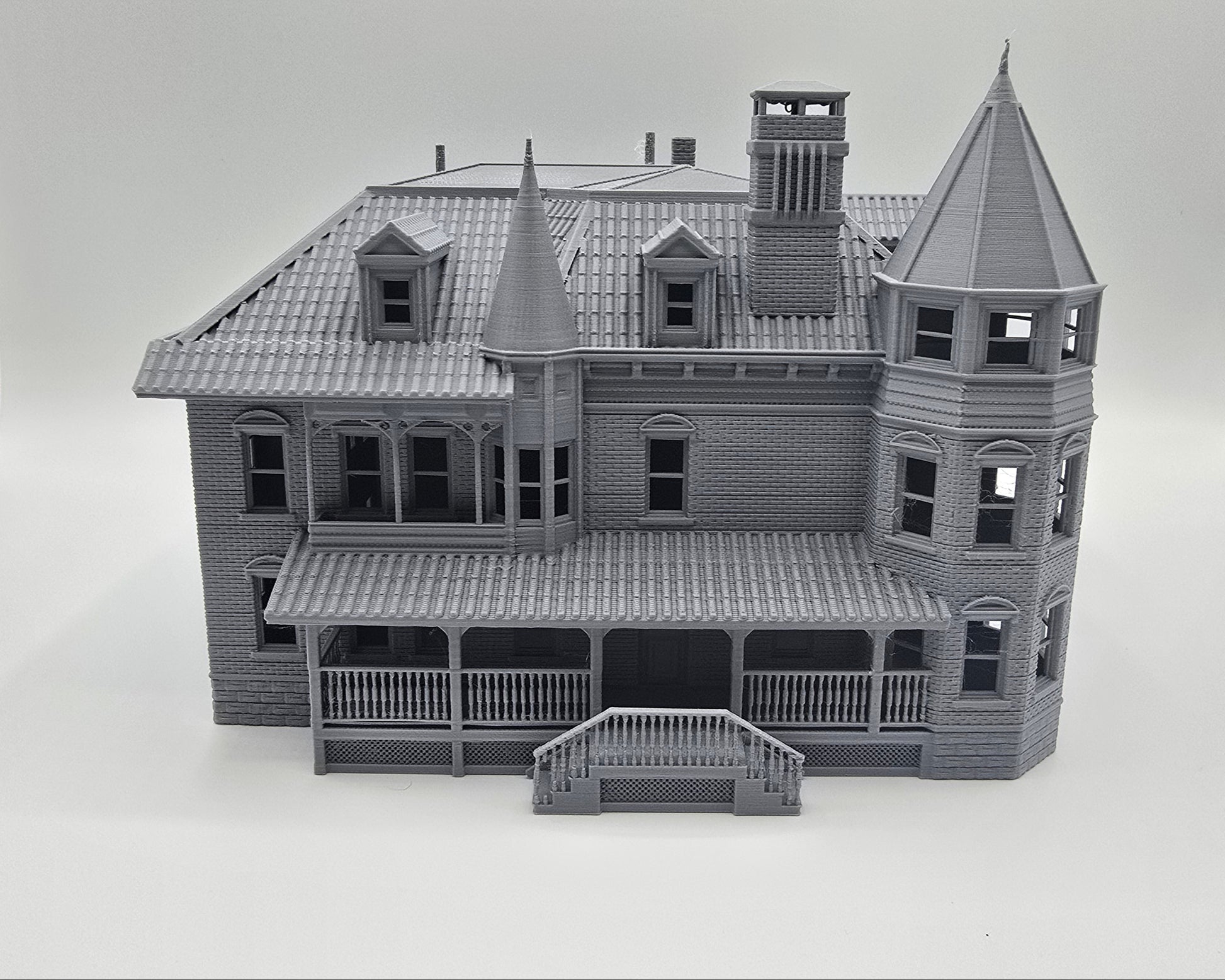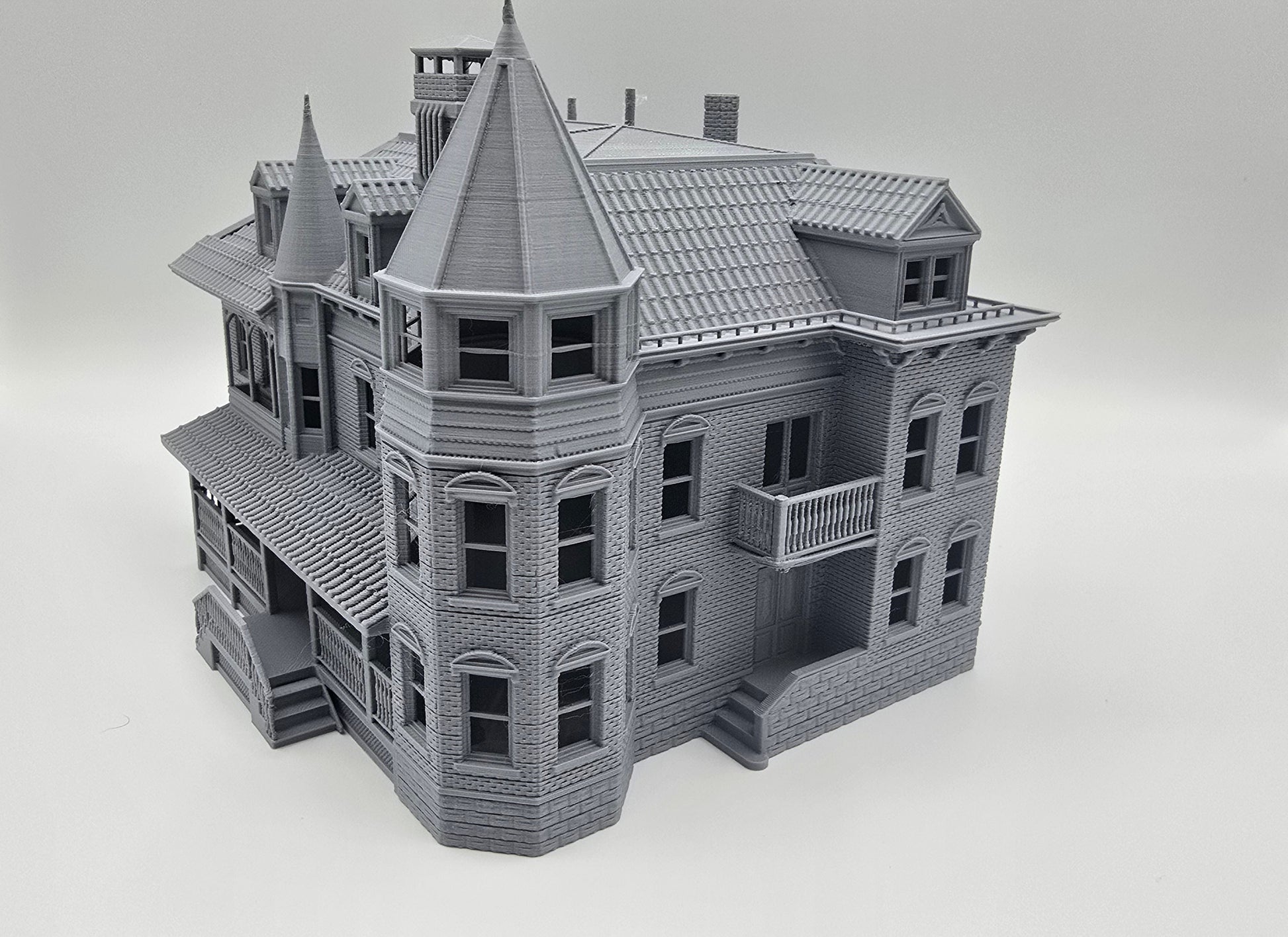 Add a touch of classic elegance to your model railroad or diorama with this beautifully detailed Ho scale Victorian house. Featuring intricate architectural details, including turrets, bay windows, a wraparound porch, and a steeply pitched roof, this model captures the charm of historic American homes.