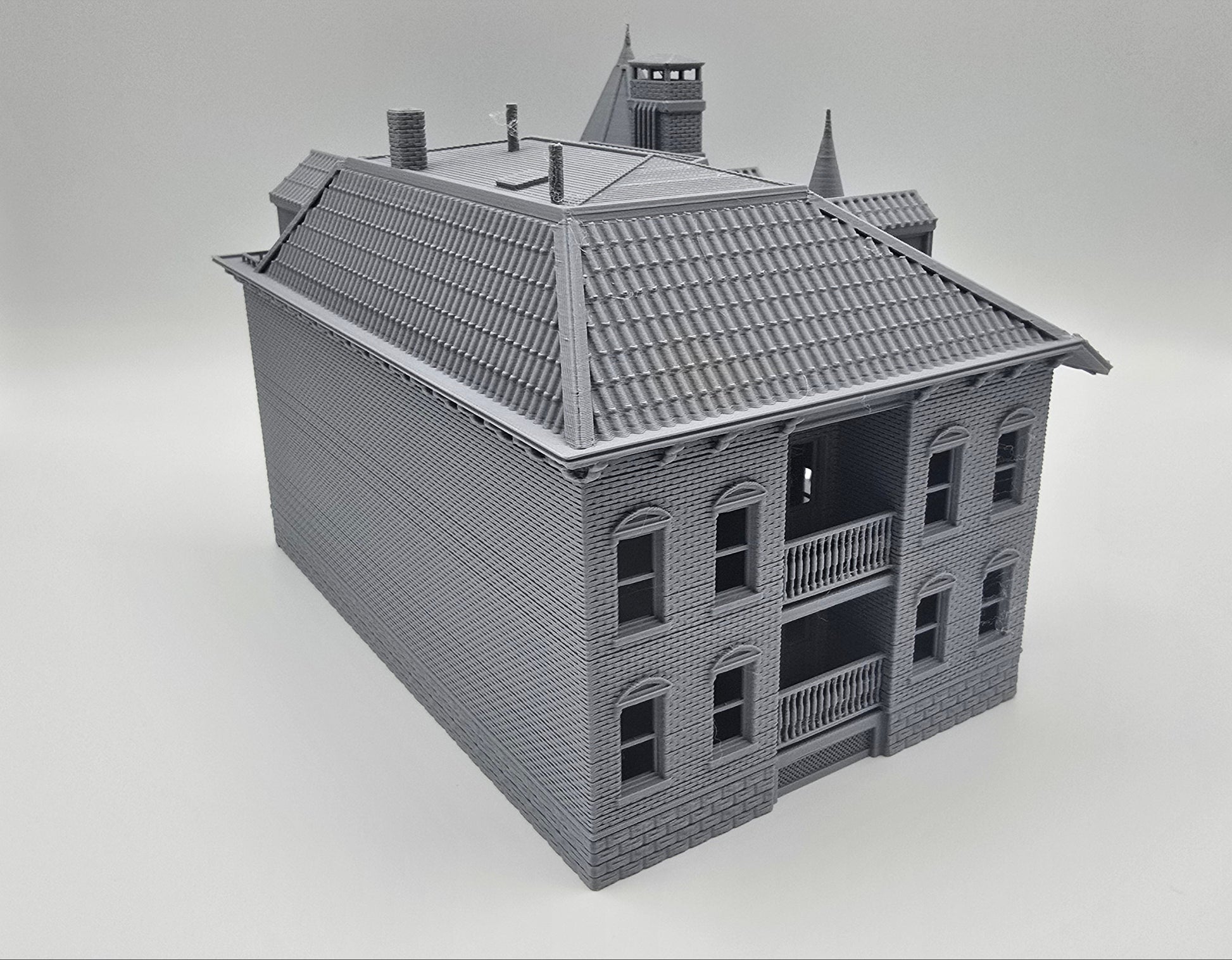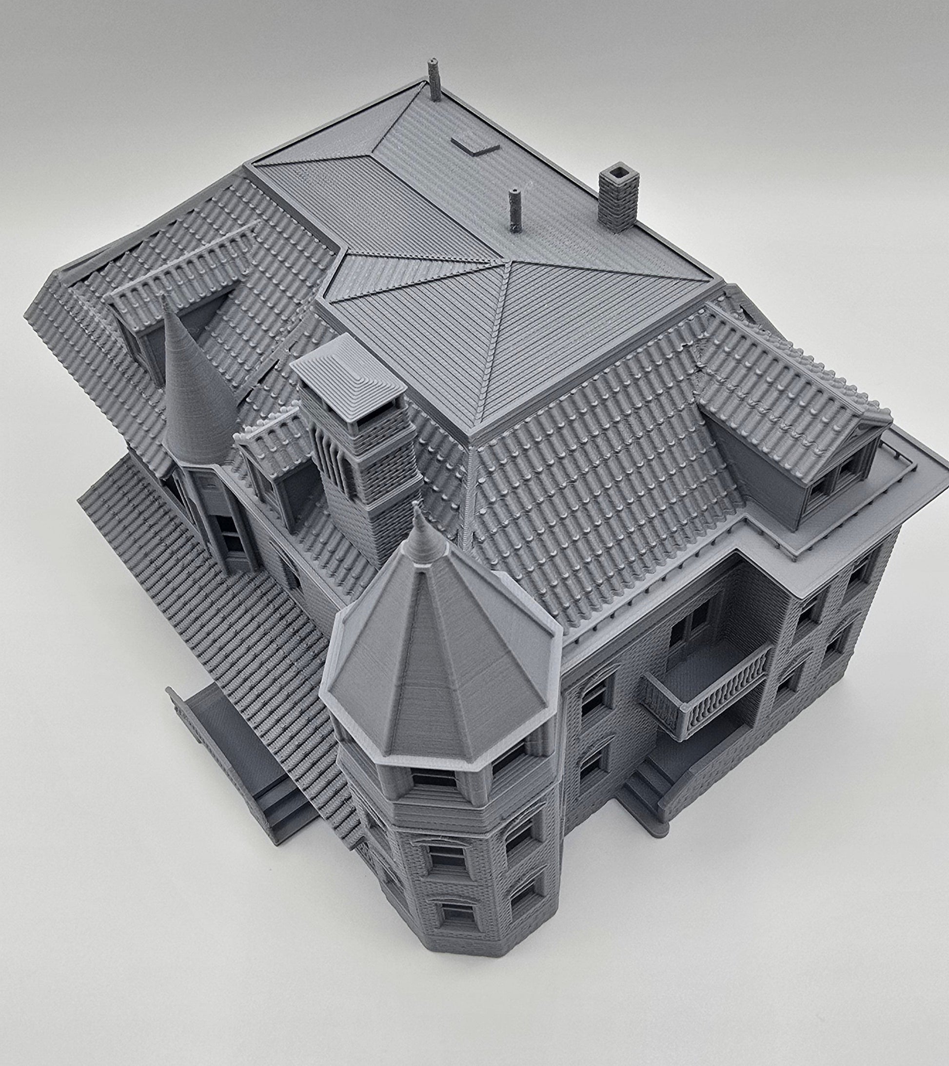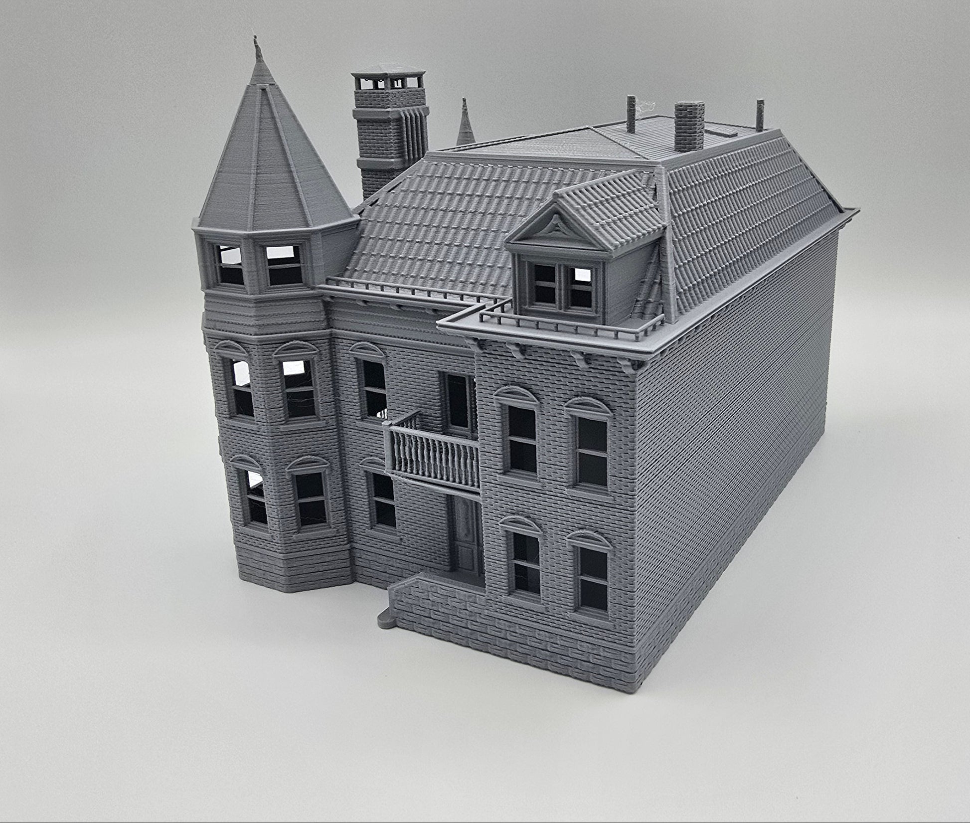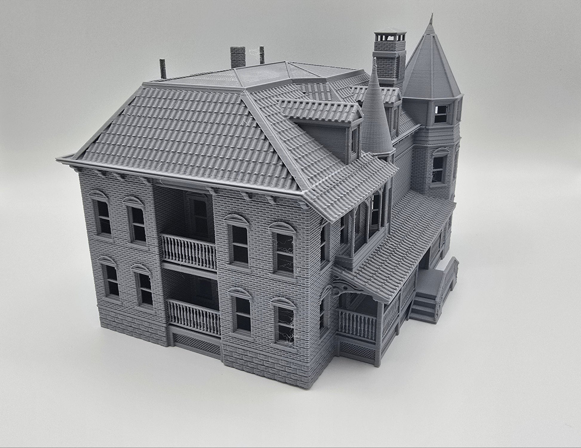 Add a touch of classic elegance to your model railroad or diorama with this beautifully detailed Ho scale Victorian house. Featuring intricate architectural details, including turrets, bay windows, a wraparound porch, and a steeply pitched roof, this model captures the charm of historic American homes.