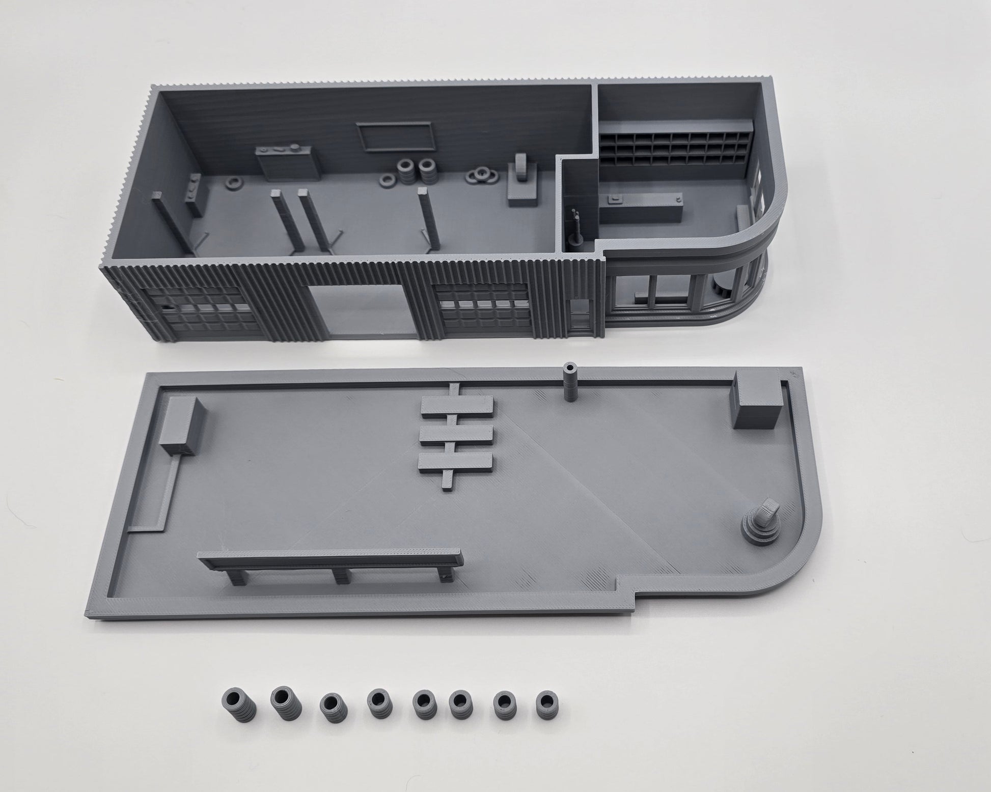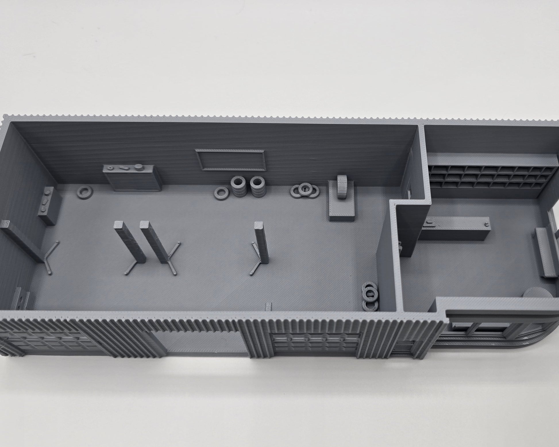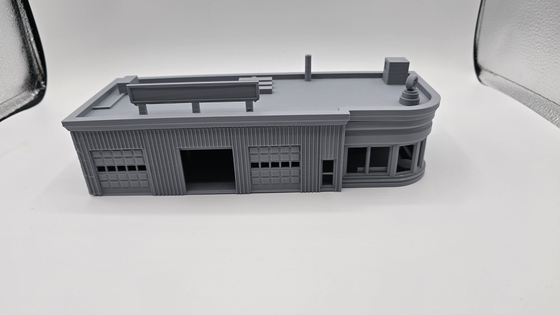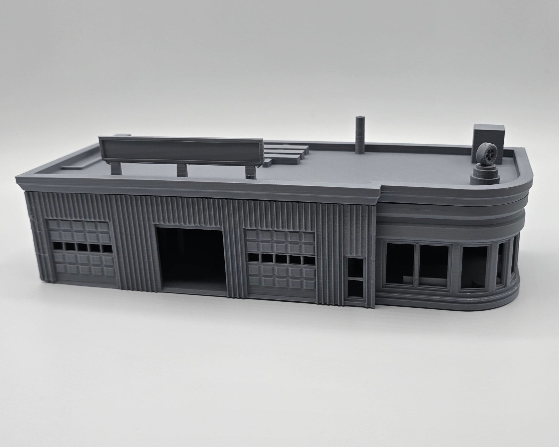 This HO scale auto shop is a highly detailed model, perfect for adding realism to your layout. Designed with both exterior and interior details, it represents a classic mid-century service garage.