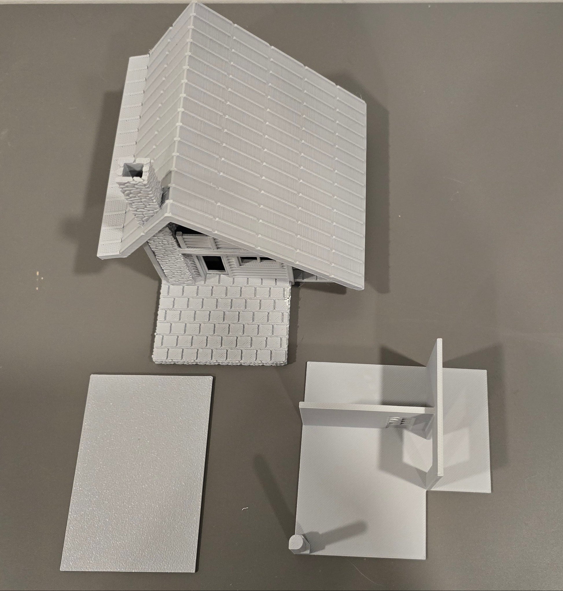 Bring the charm of the mountains to your collection with this Ho Scale 3D-printed mountain cabin model. Designed with intricate details, this miniature captures the essence of a cozy, rustic retreat, perfect for dioramas.