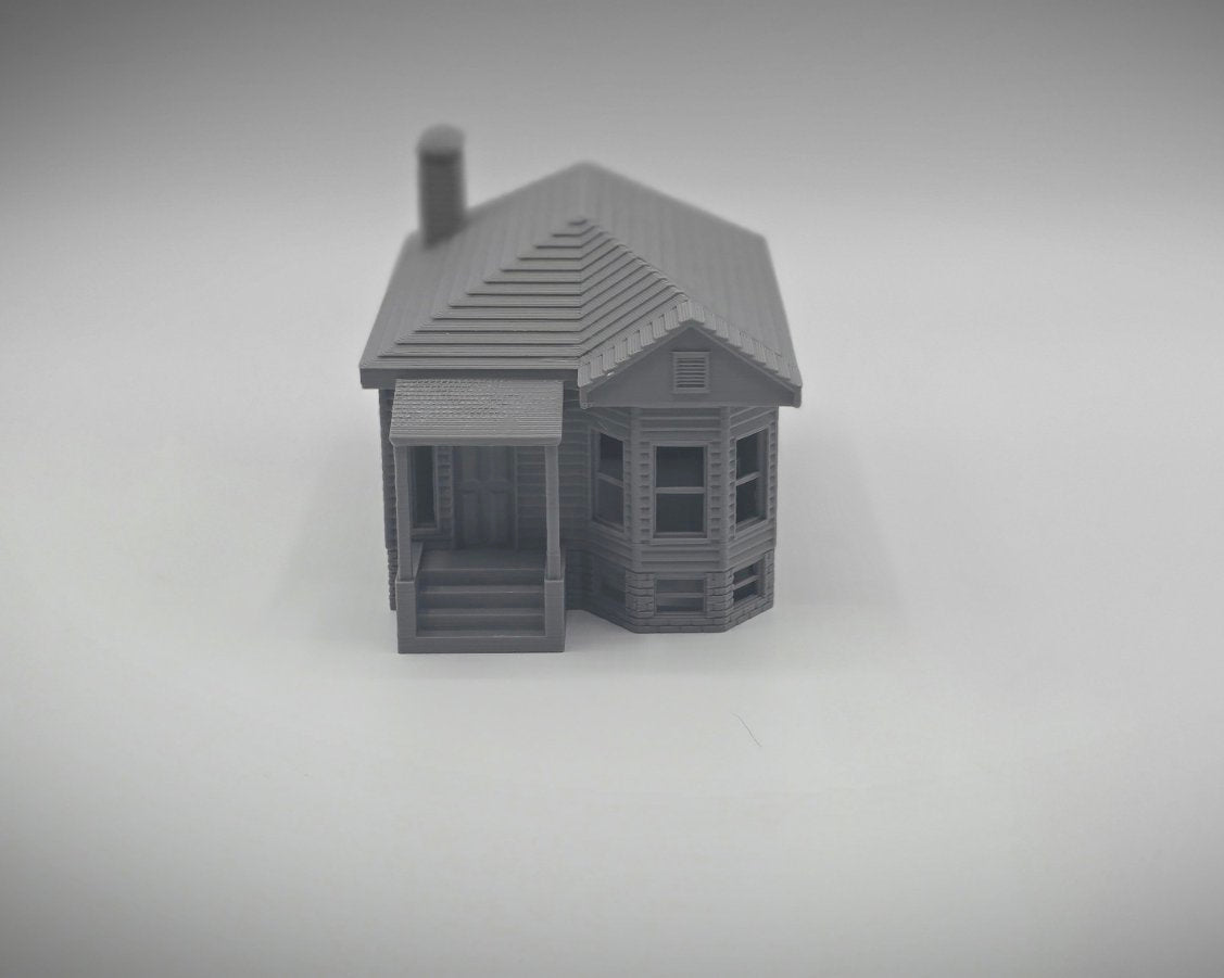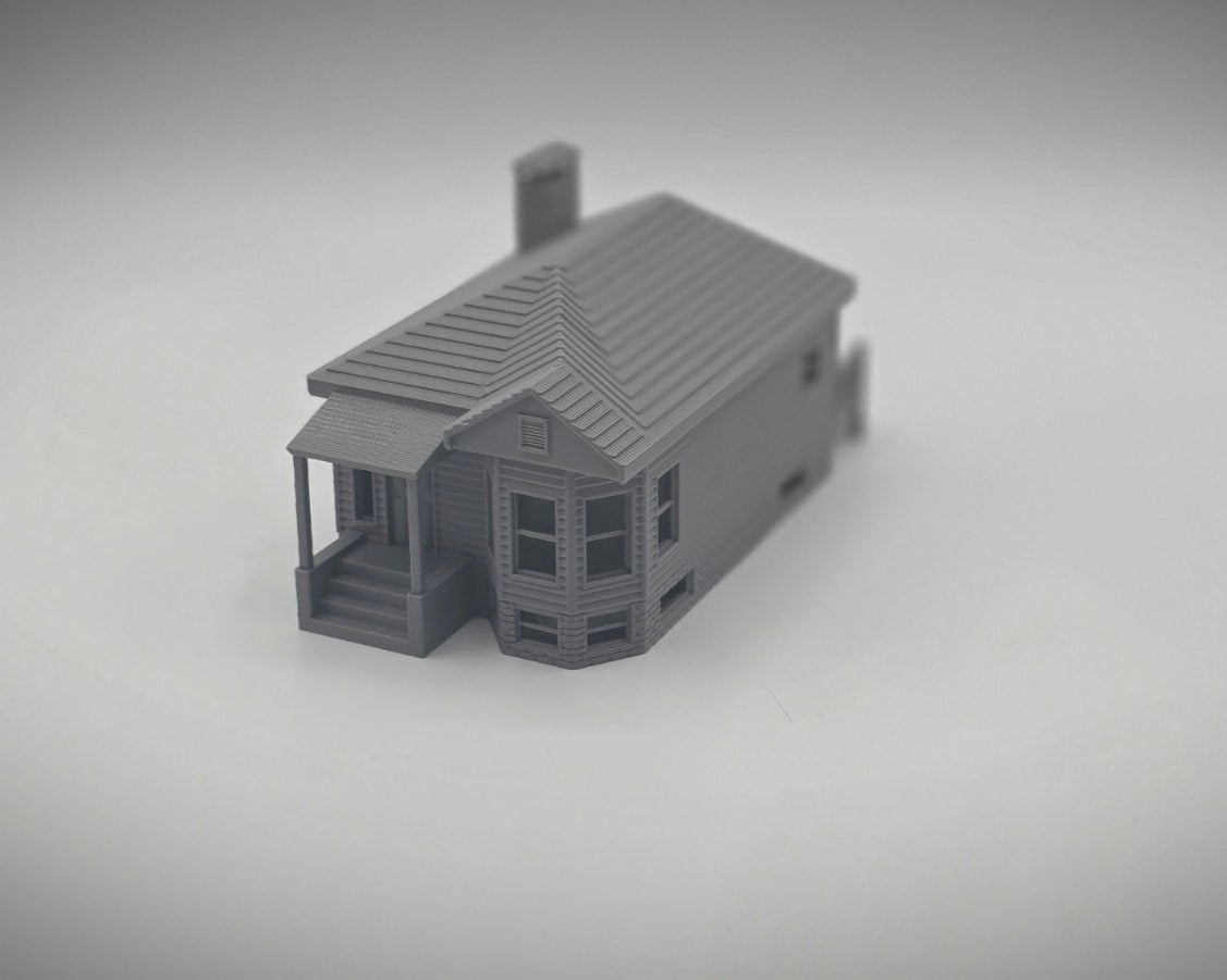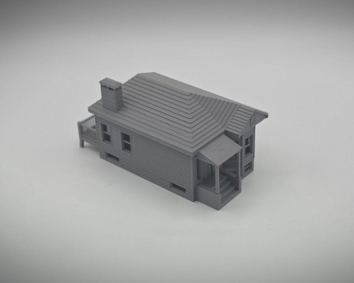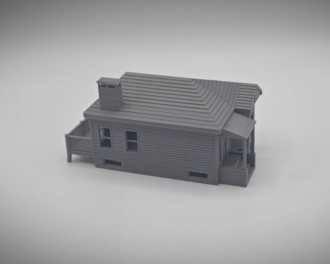 Add realistic charm to your layout with this compact HO scale American home. Modeled with attention to detail, this single-story residence features a front bay window, covered entry porch, rear deck, and brick foundation—ideal for residential scenes in urban or rural settings.
