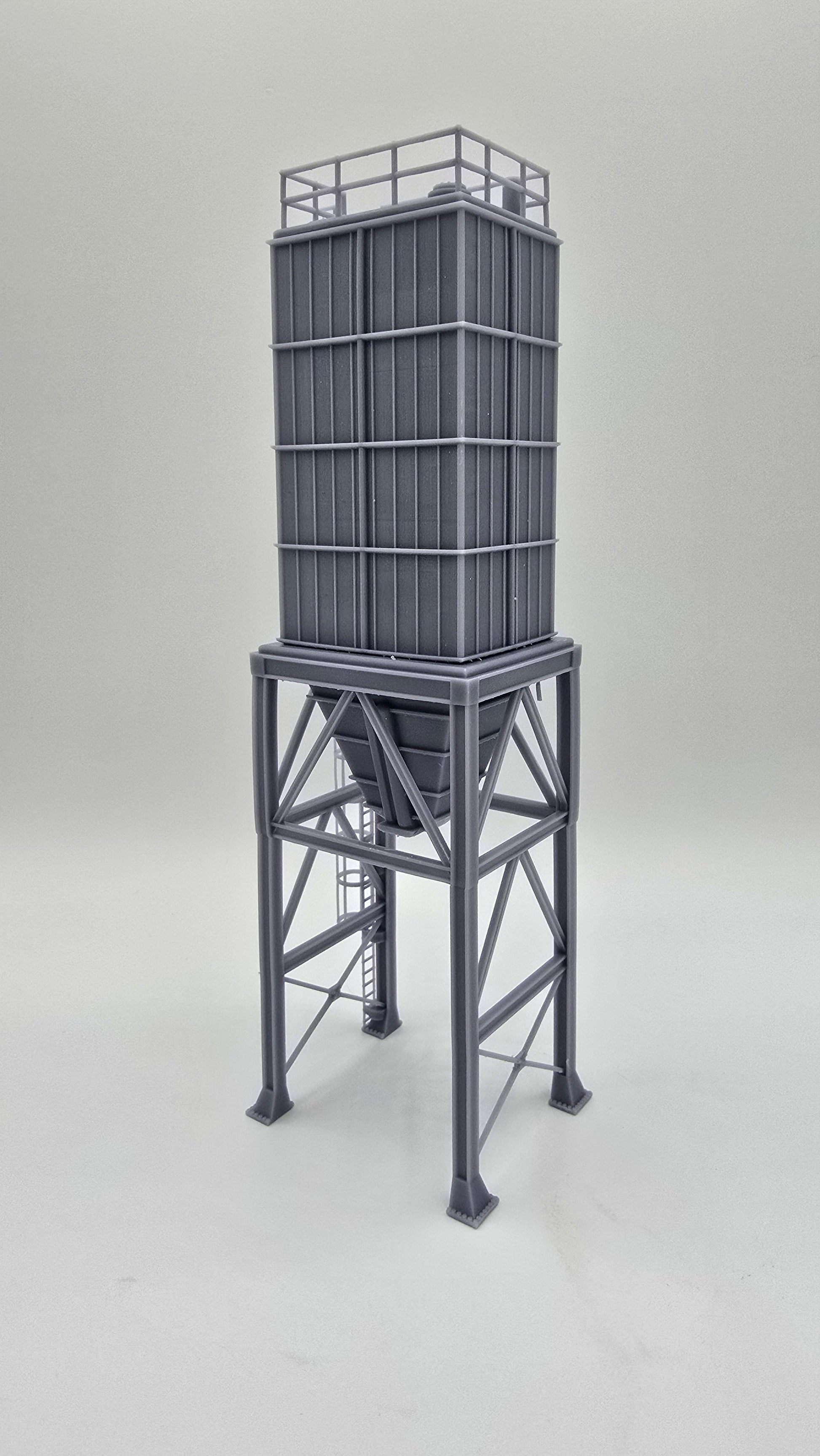 Bring authentic industrial detail to your layout with this tall square silo/hopper bin structure.