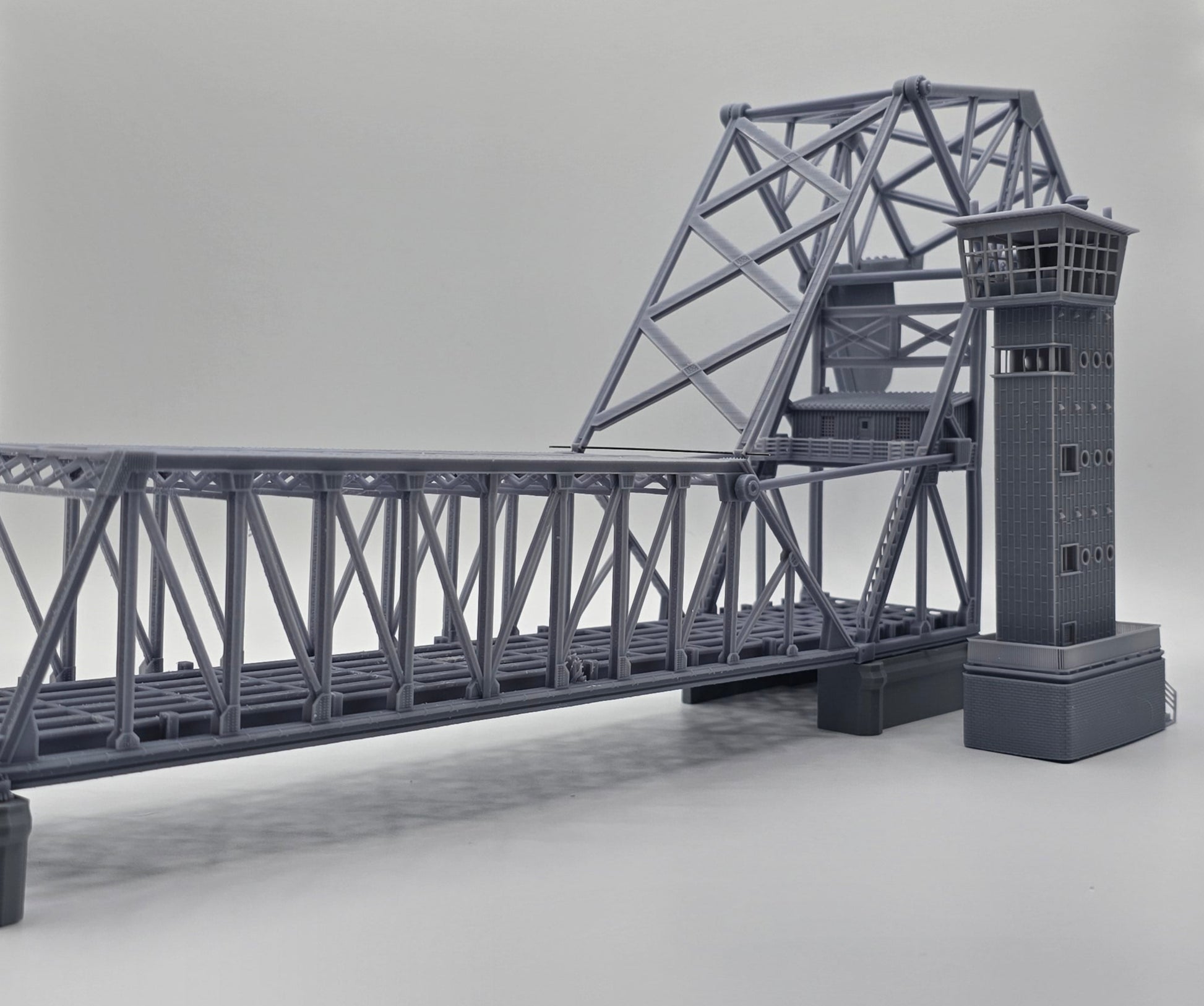 Elevate your N scale (1:160) model railroad layout with this detailed 3D-printed bascule bridge, designed for authenticity and realism. Featuring a functional lift design, this bridge is a perfect addition to waterways, industrial settings, and urban rail systems.
