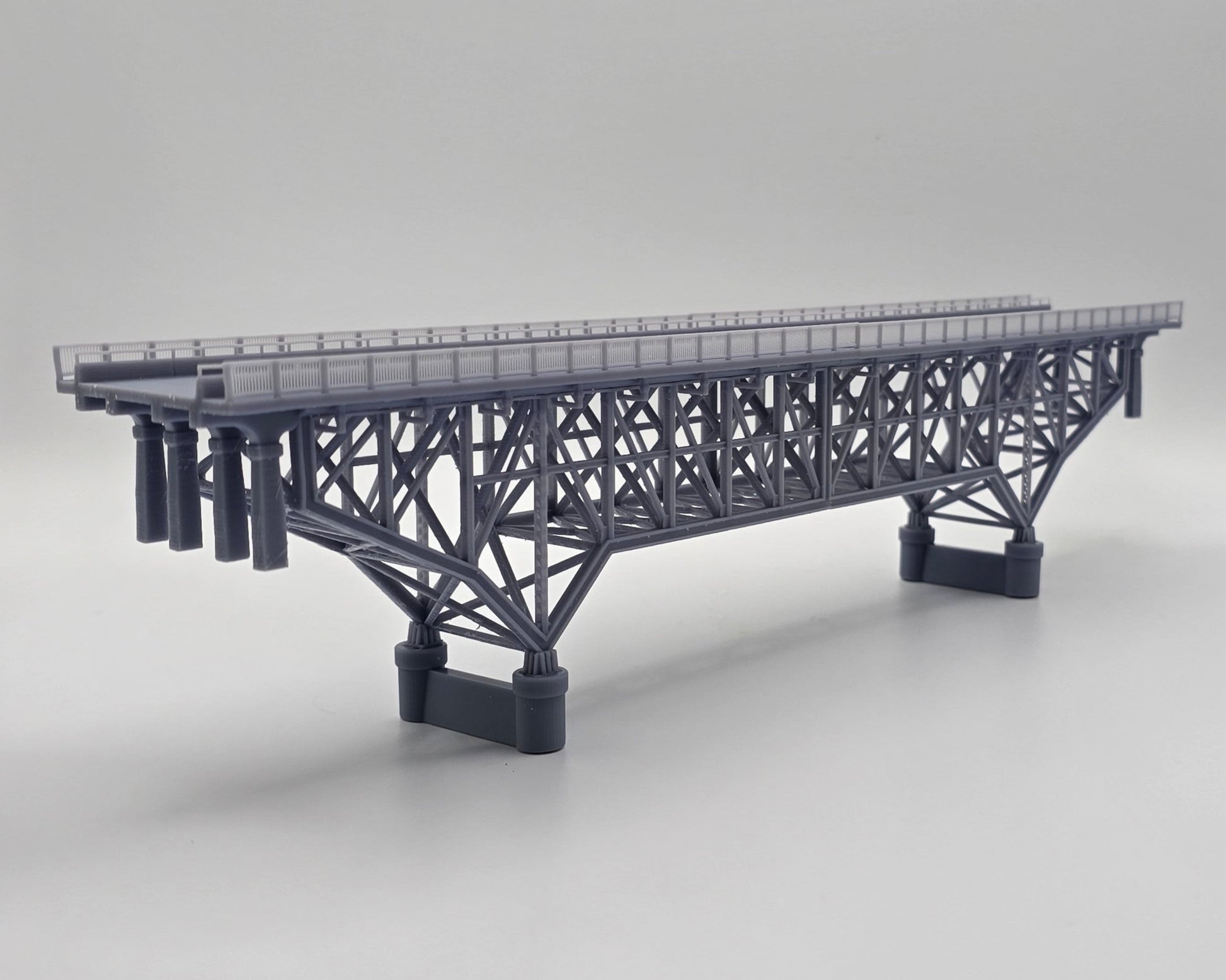 This highly detailed N scale (1:160) bridge model is inspired by the real Yellowstone River crossing in Gardiner, Montana. Perfect for adding realism and depth to your model railroad layout.