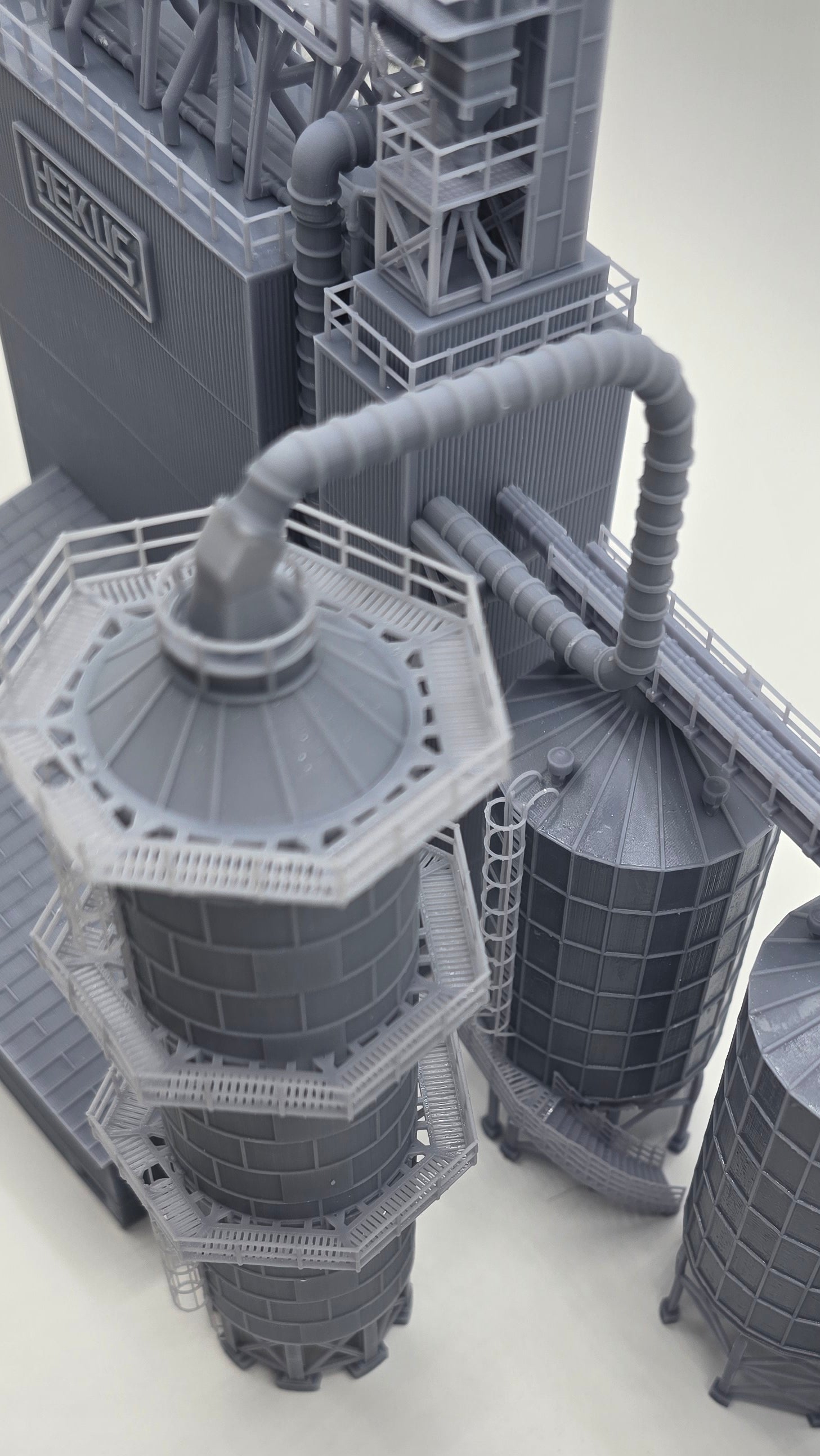 This model is ideal for expanding your grain facility or adding a touch of realism to your farm or freight scene. Other structures in some photos are for visual reference and are sold separately.