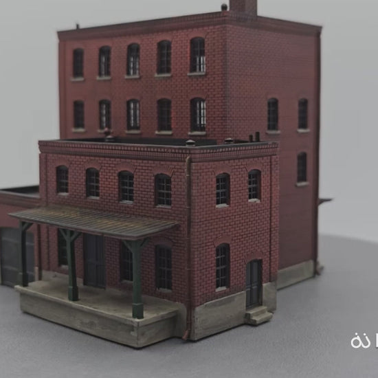 Add realistic industrial character to your N scale layout with the Harborline Brick Depot, a multi-story brick warehouse featuring a covered loading dock and crisp resin-printed details.