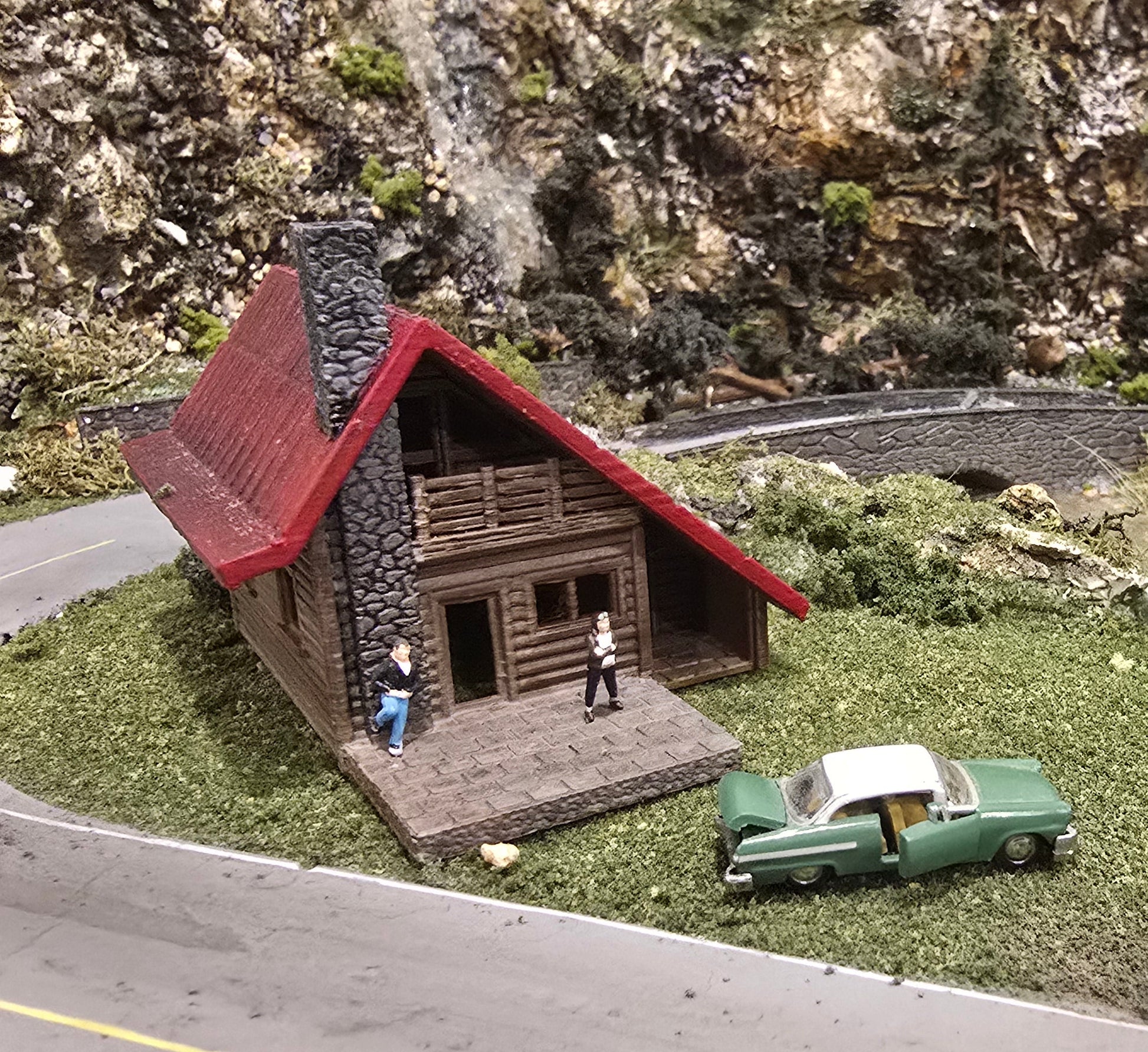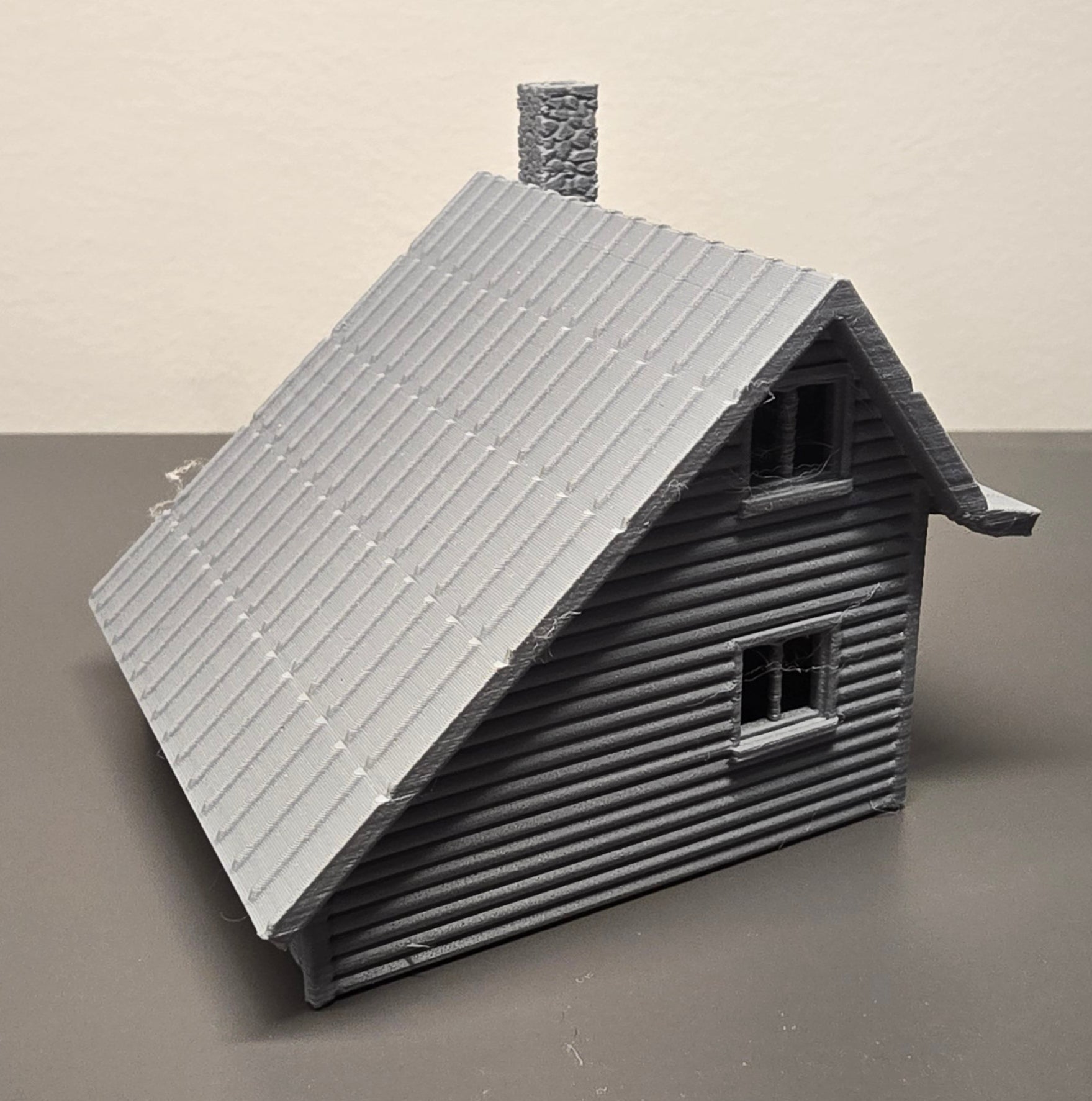 Bring the charm of the mountains to your collection with this N Scale 3D-printed mountain cabin model. Designed with intricate details, this miniature captures the essence of a cozy, rustic retreat, perfect for dioramas.
