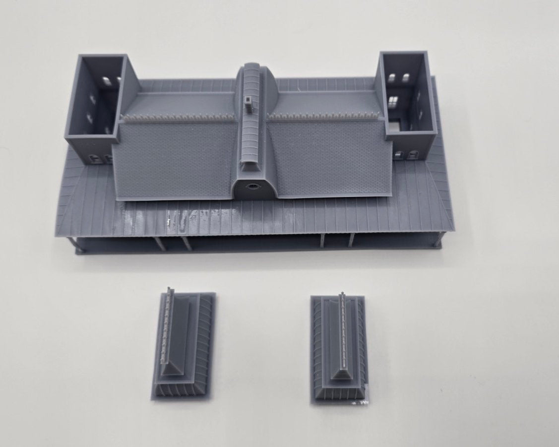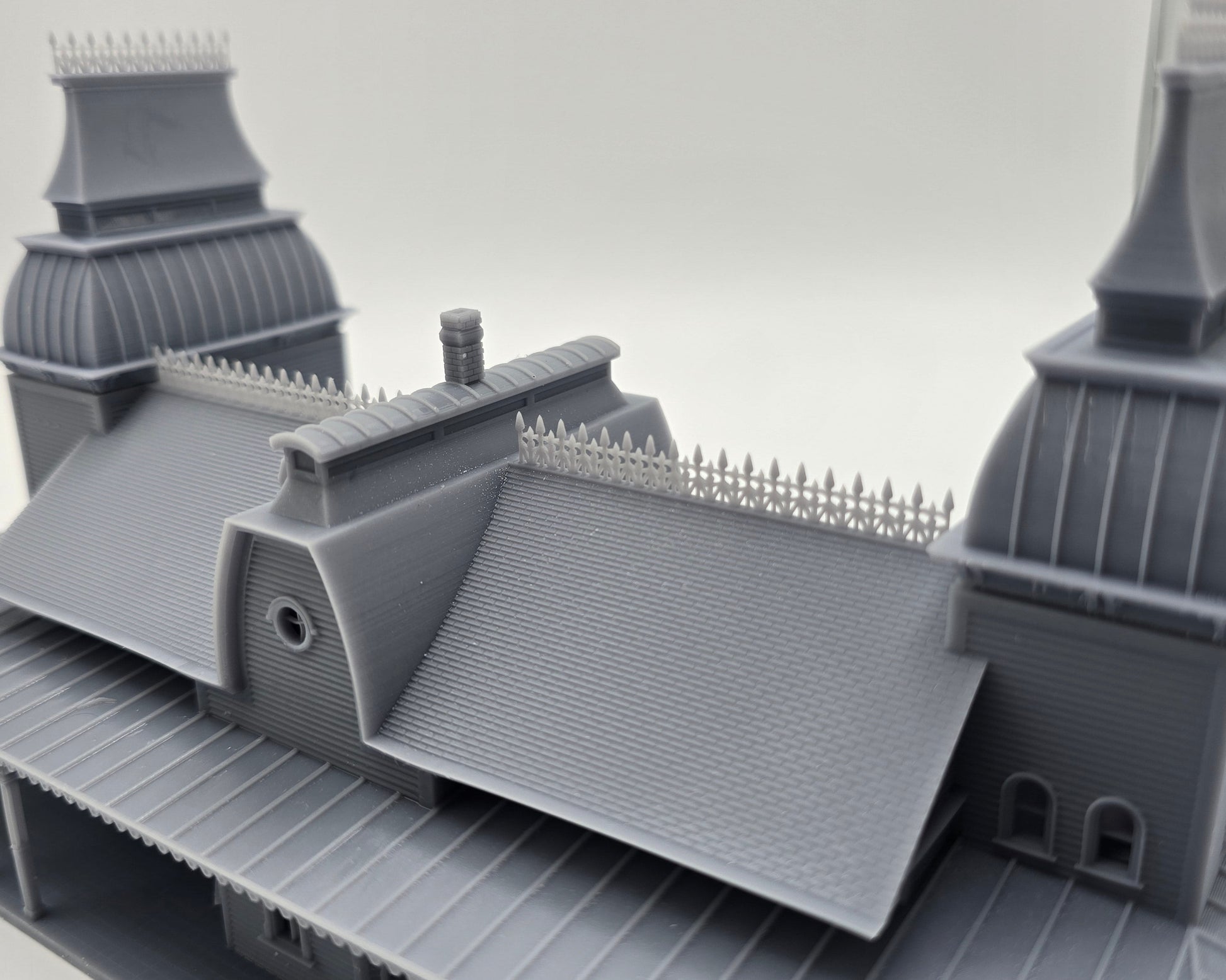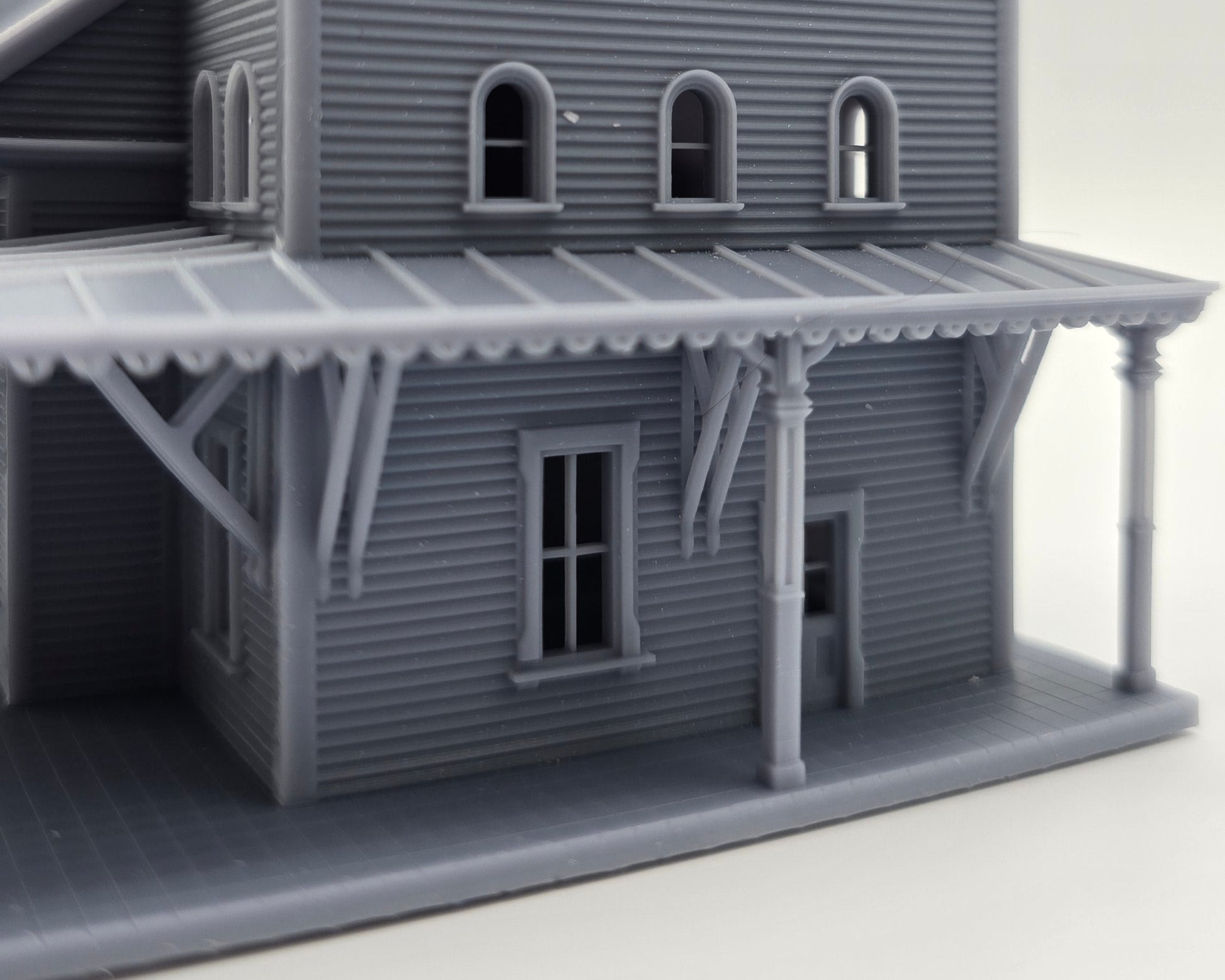 This is a high-detail N scale model of the North Conway Station, featuring intricate architectural elements that capture the essence of the historic railway station.