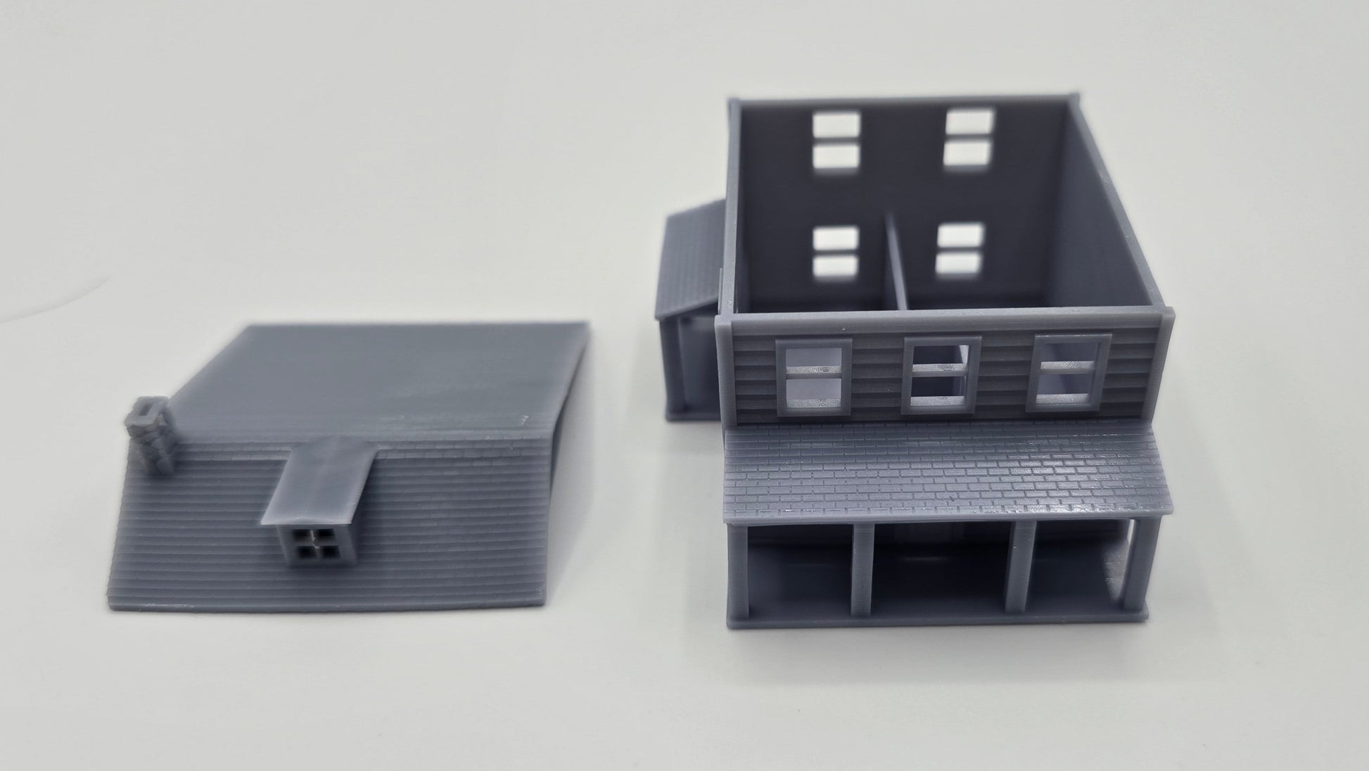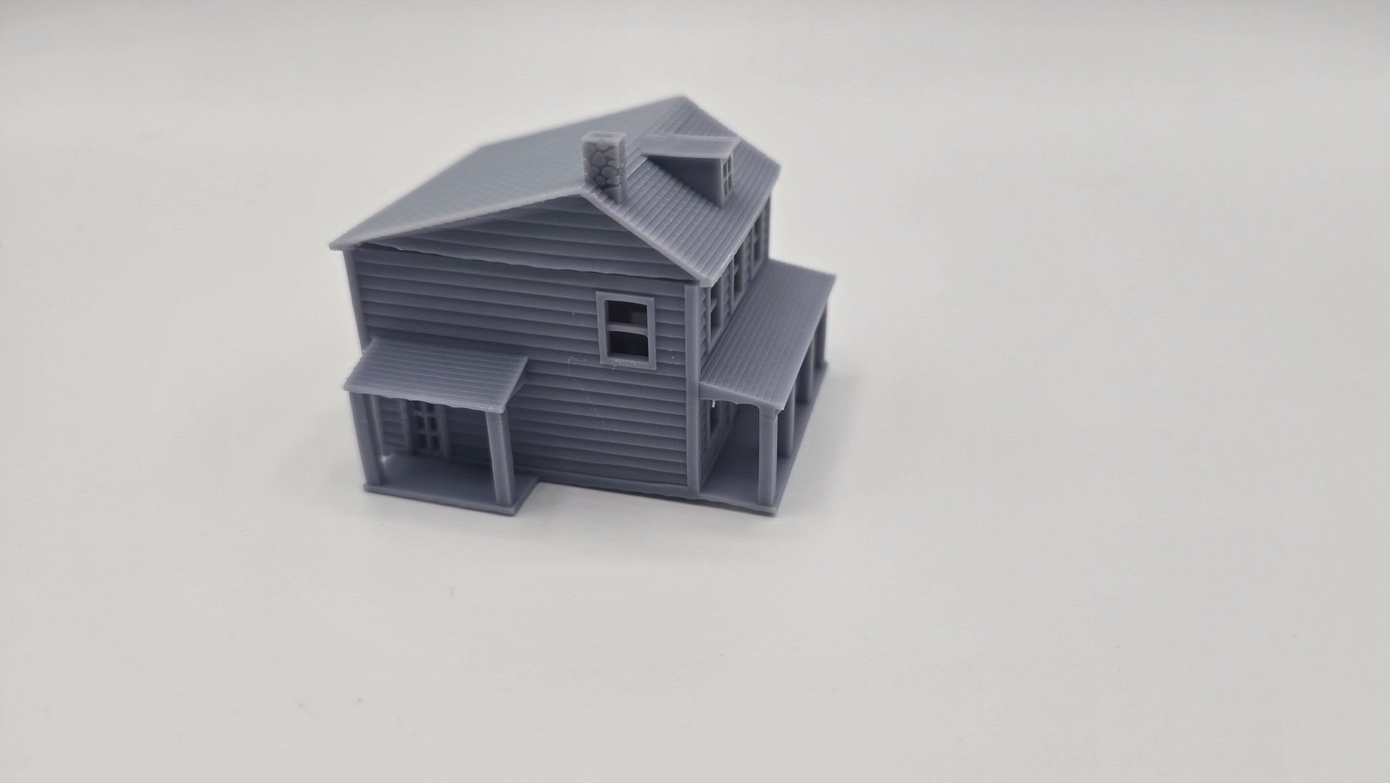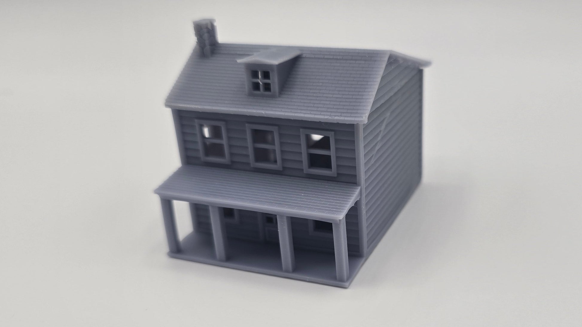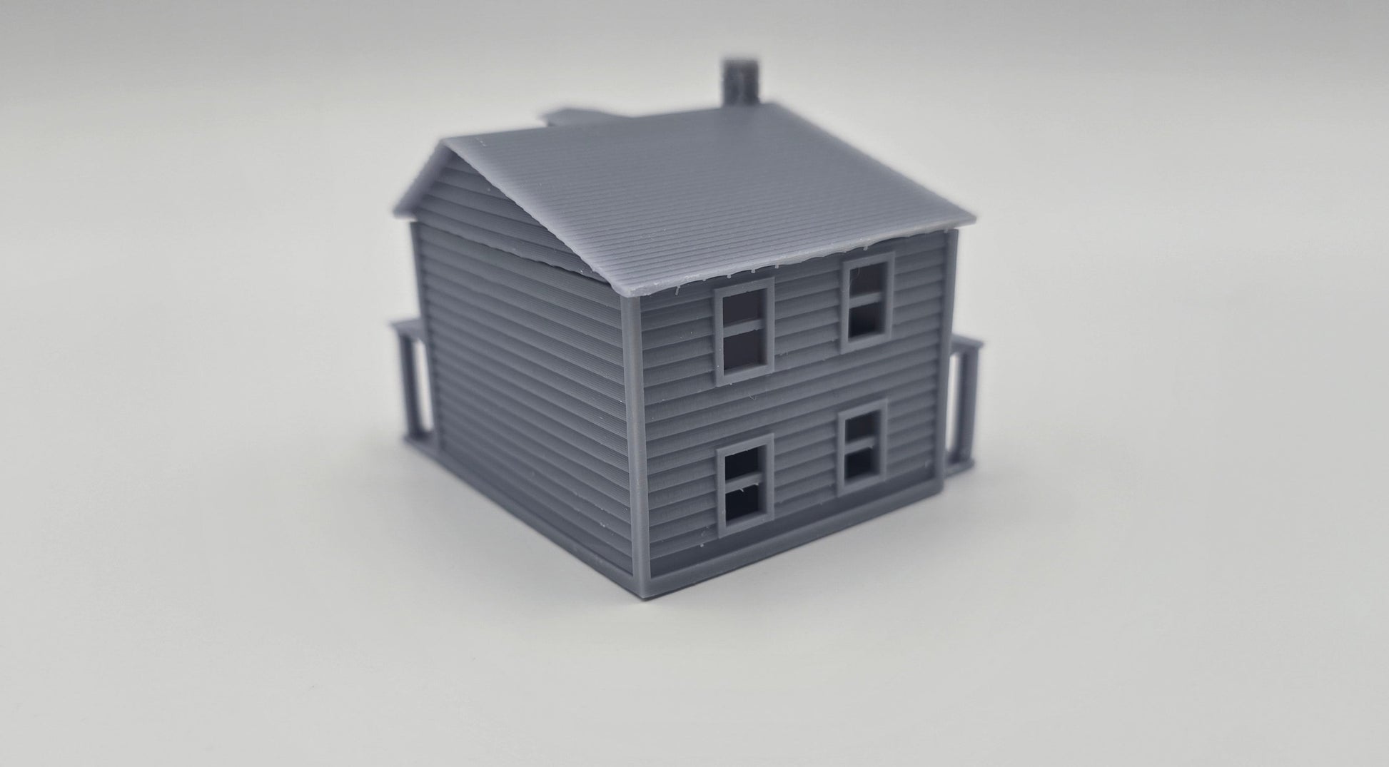 Enhance your N scale layout with this highly detailed, 3D-printed two-story house model. Designed with realistic architectural elements, this miniature structure is ideal for adding character to your model railroad or diorama.