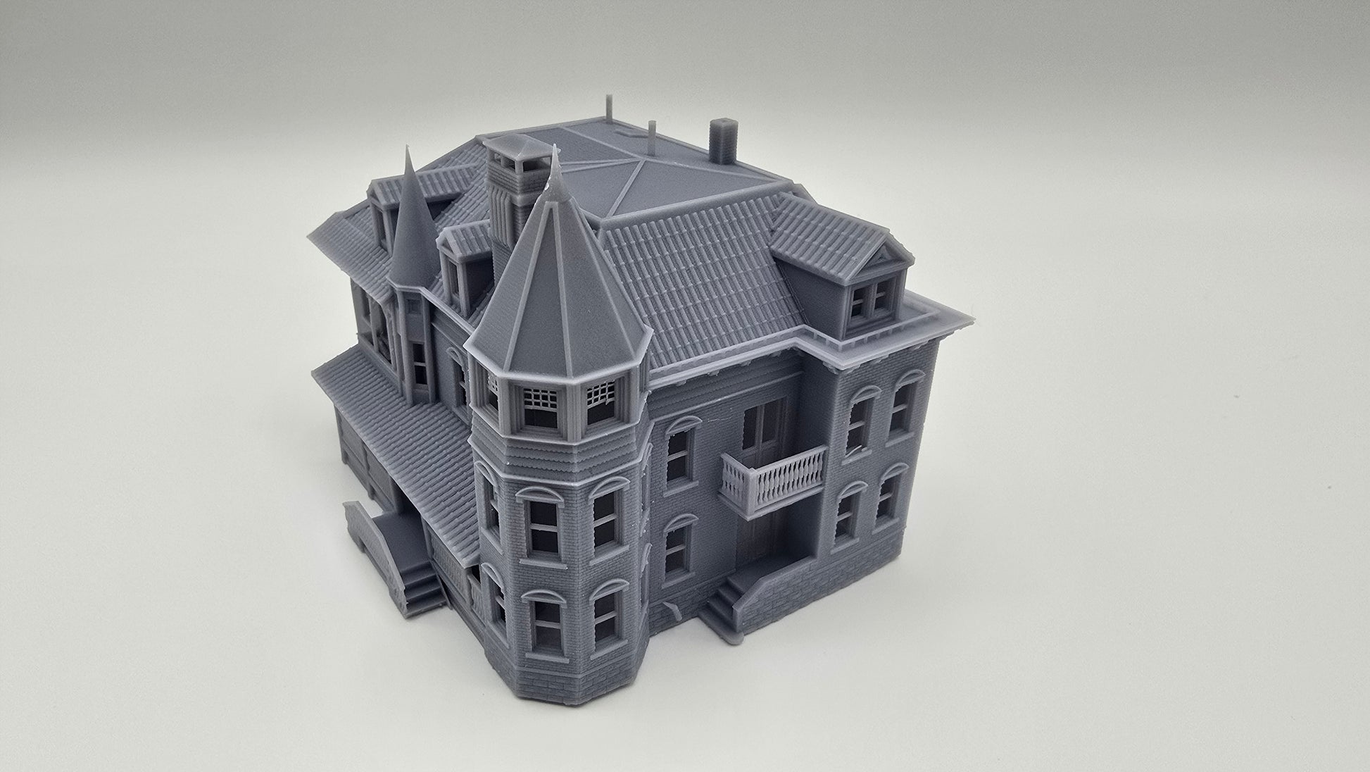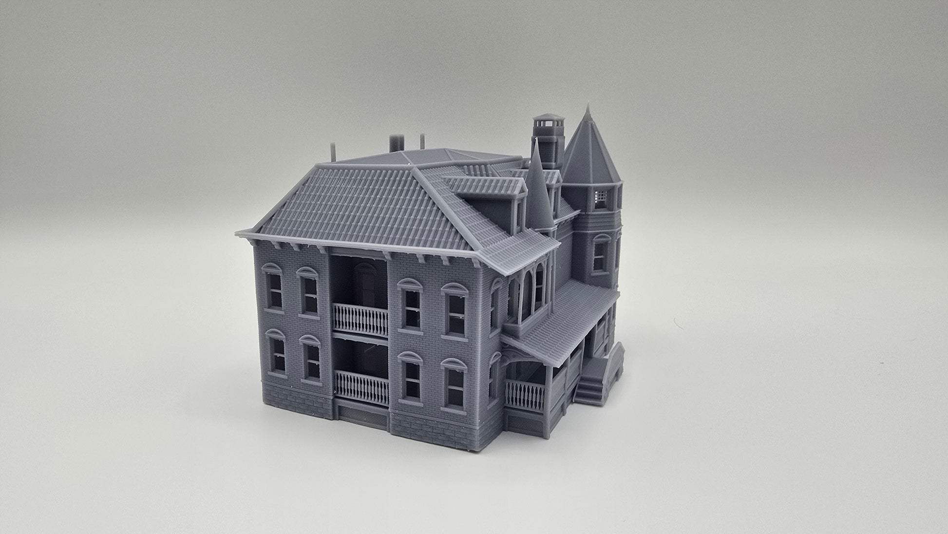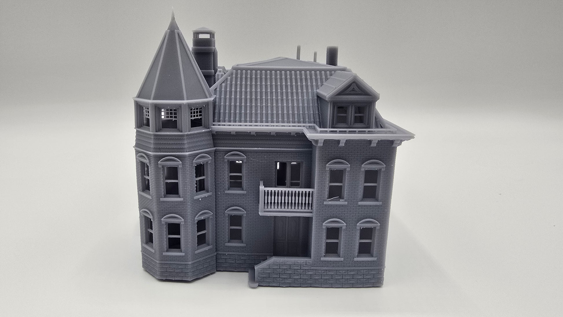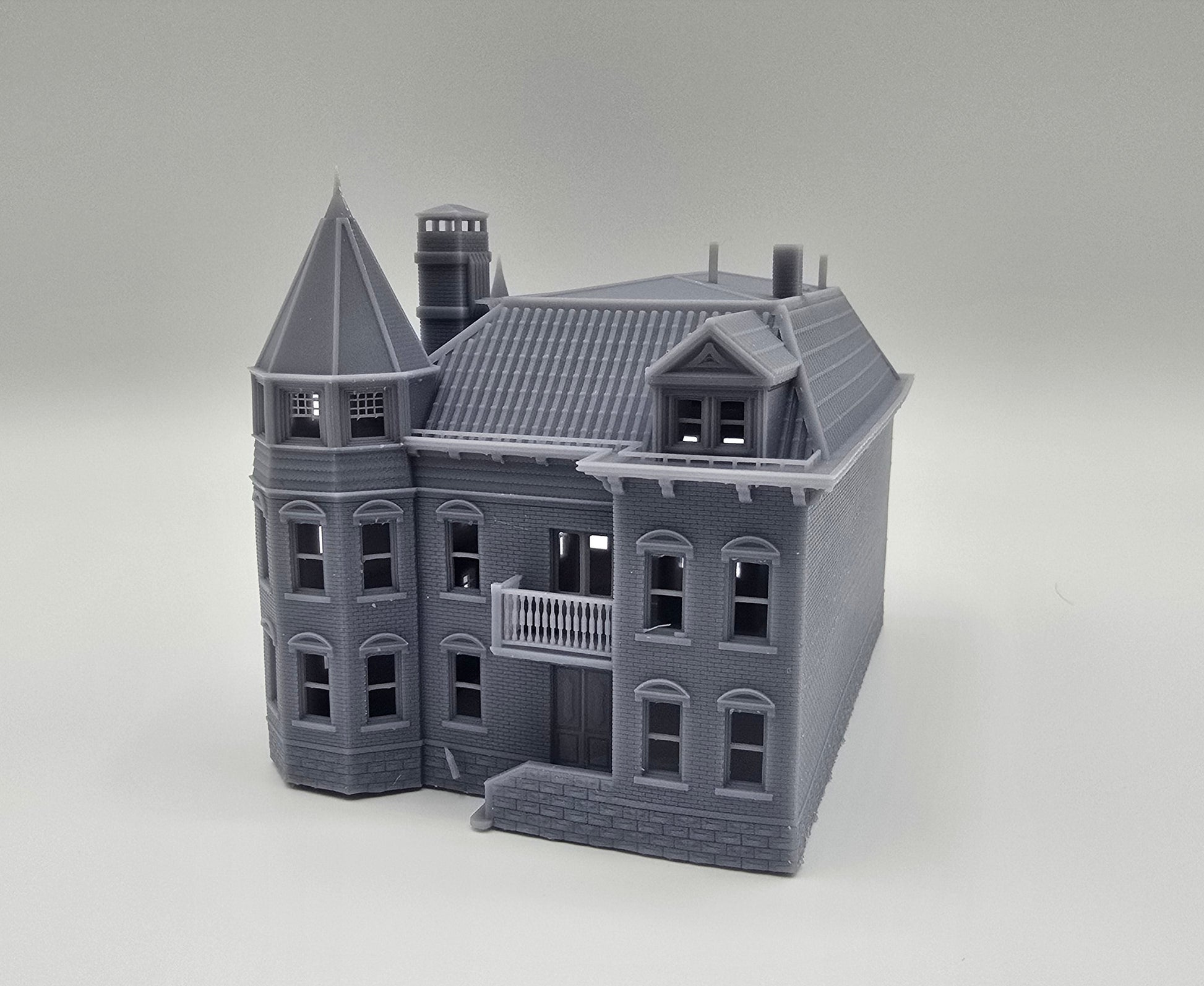 Add a touch of classic elegance to your model railroad or diorama with this beautifully detailed N scale Victorian house. Featuring intricate architectural details, including turrets, bay windows, a wraparound porch, and a steeply pitched roof, this model captures the charm of historic American homes.