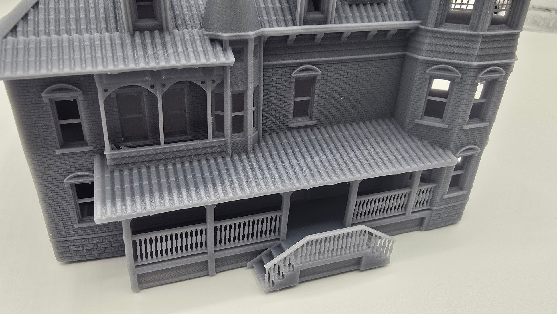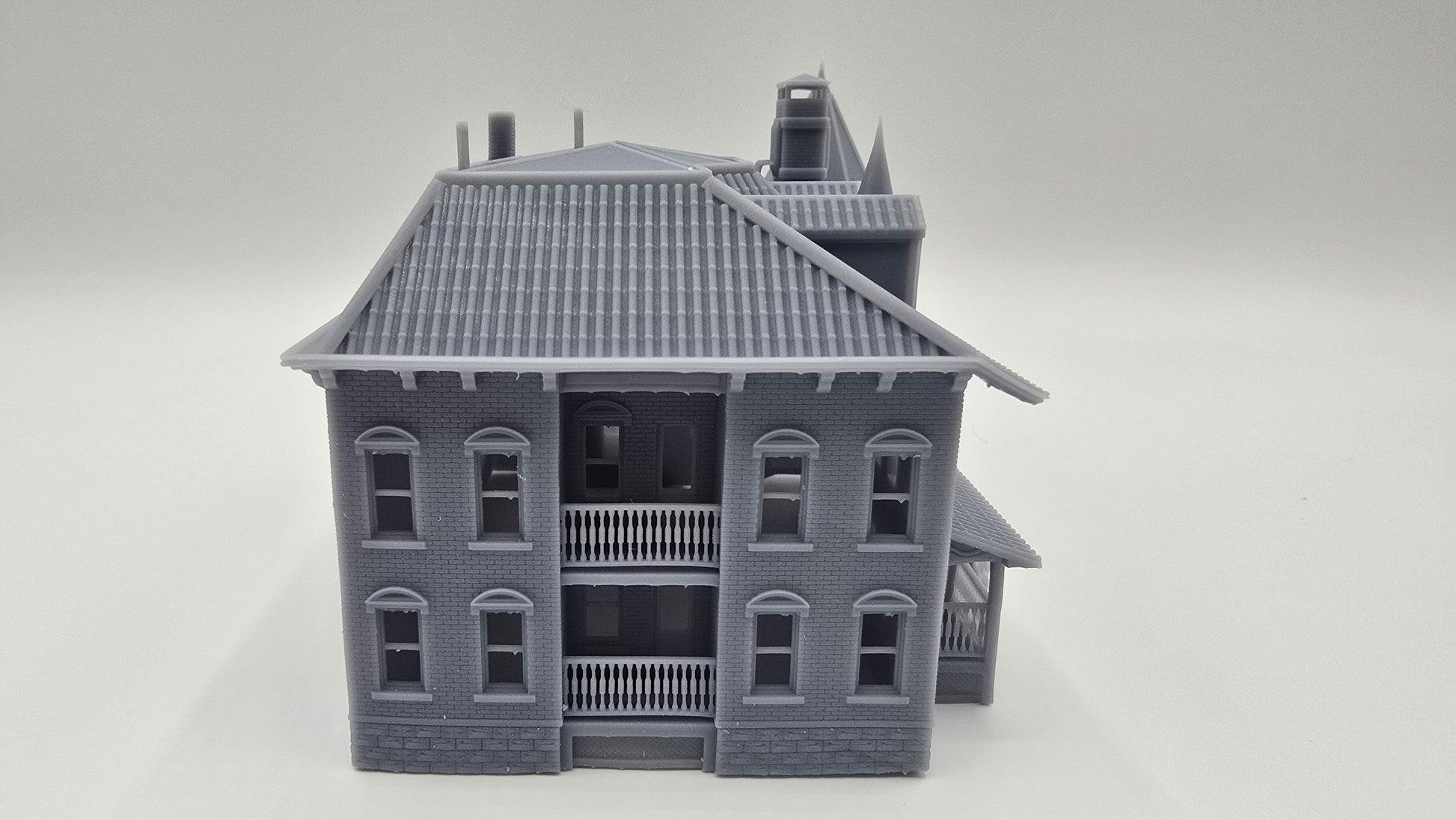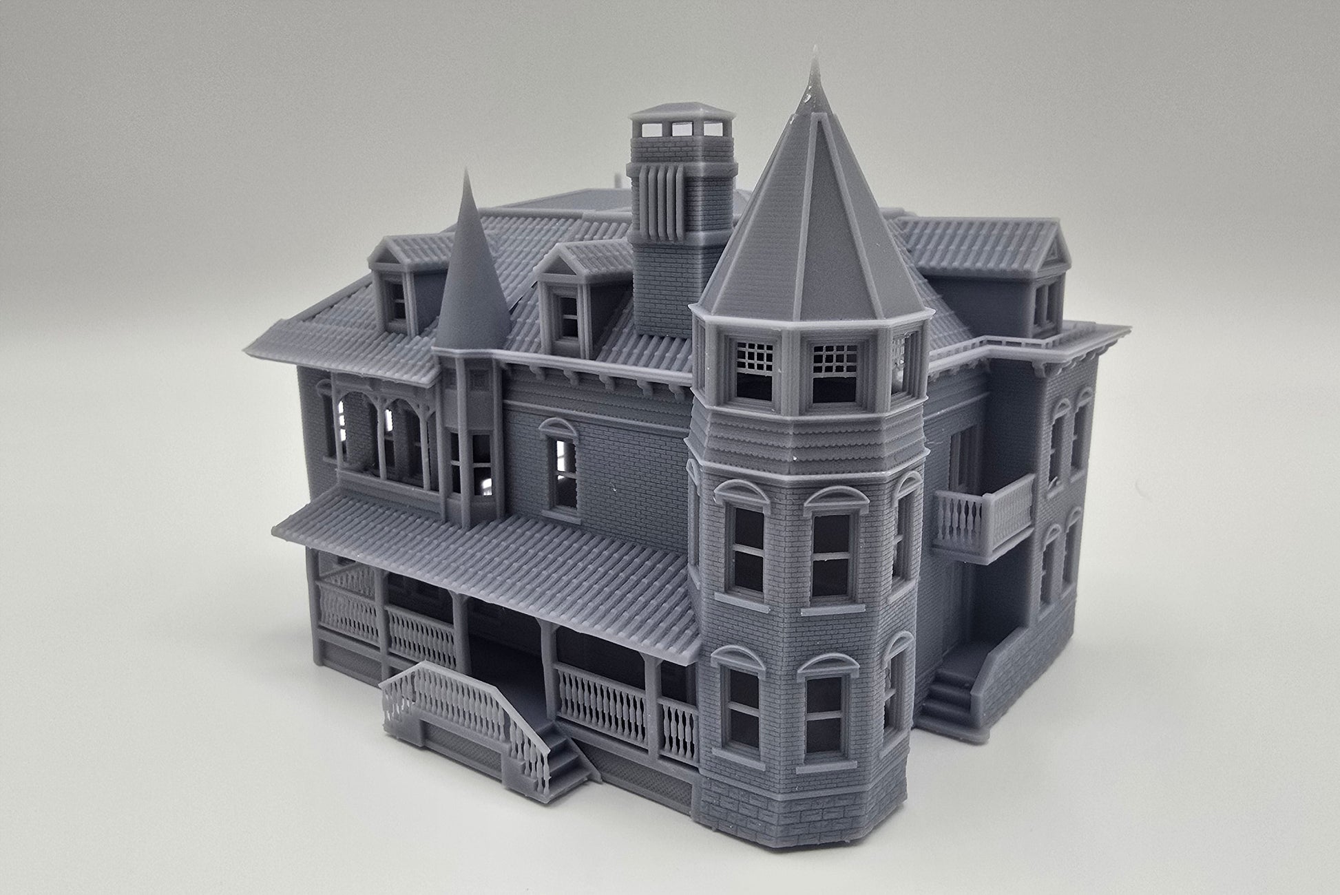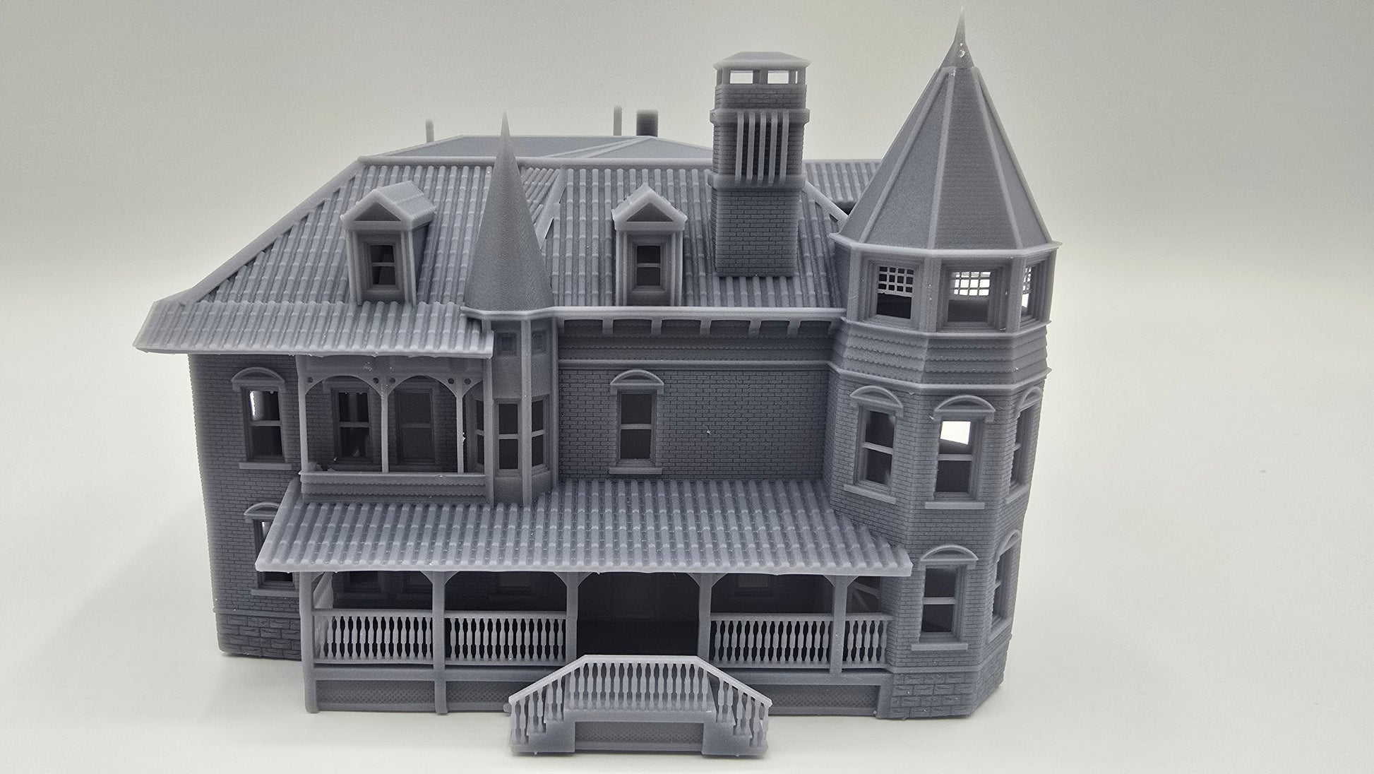 Add a touch of classic elegance to your model railroad or diorama with this beautifully detailed N scale Victorian house. Featuring intricate architectural details, including turrets, bay windows, a wraparound porch, and a steeply pitched roof, this model captures the charm of historic American homes.